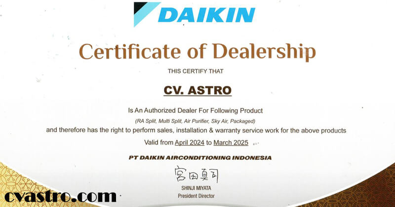 Nah bagi Anda yang berminat untuk memiliki AC Daikin, tentunya akan lebih baik jika membelinya langsung dari dealer resmi AC Daikin Indonesia yaitu di CV. Astro.